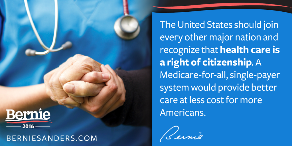 The United States remains the only major country on earth that does not guarantee health care for all as a right. – Senator Bernie Sanders