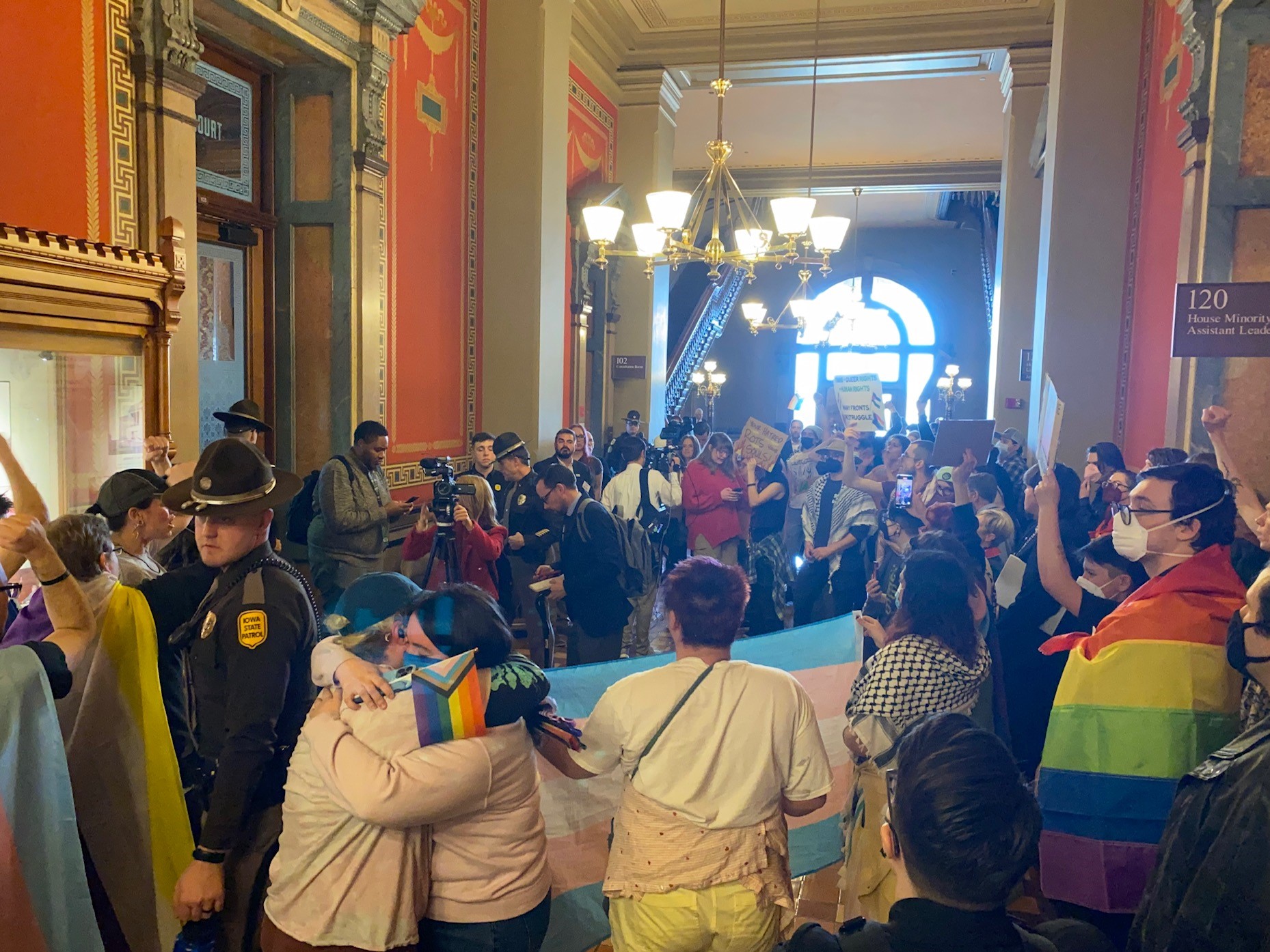 This March, Iowa Republicans will push to pass anti-trans bills such as the LGBTQ Erasure Act – also known as the “pink triangle law” – and bills that continue their attack on trans students and incarcerated trans people and more.
